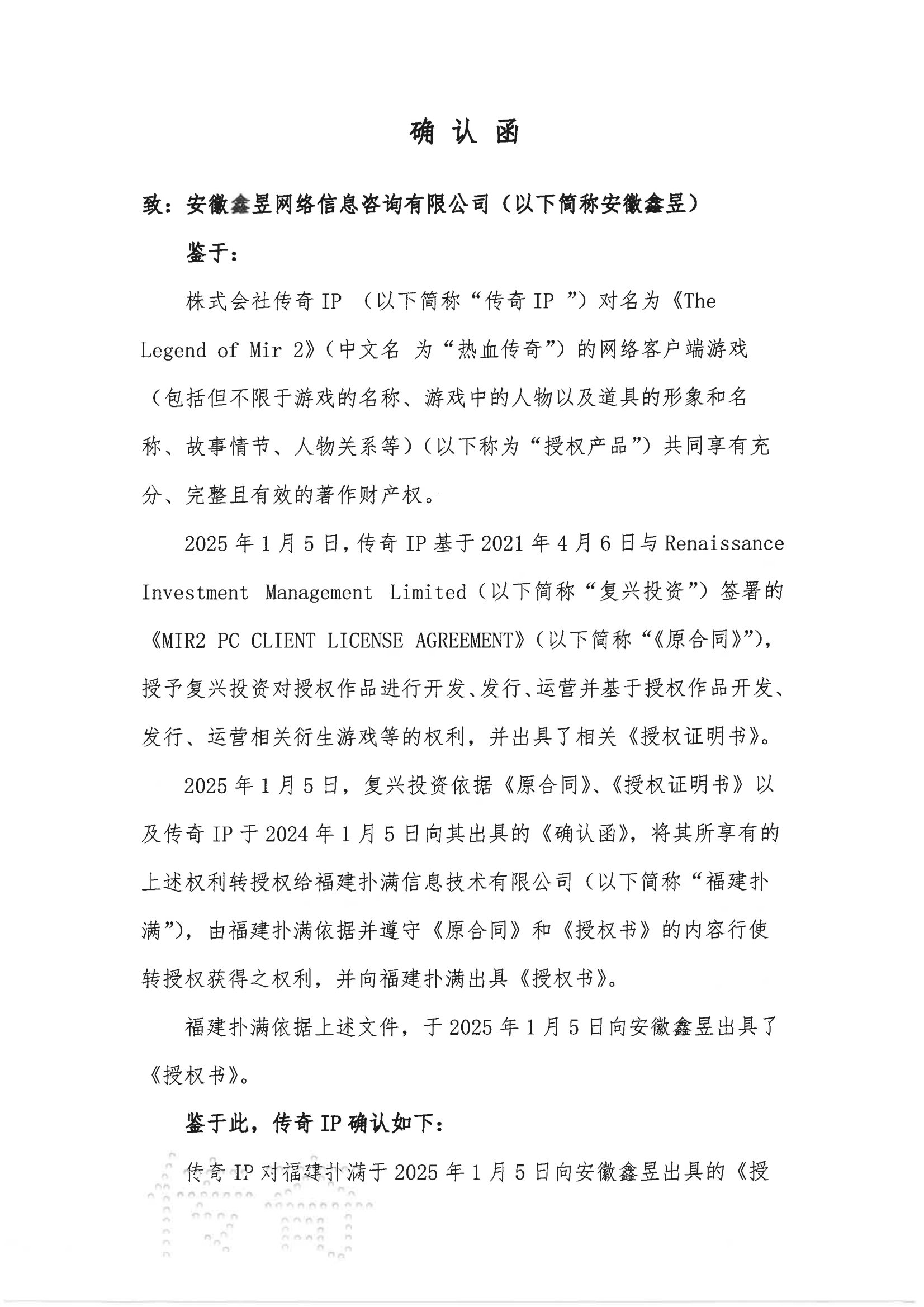 關于對《The Legend of Mir 2》(熱血傳奇) 衍生品游戲直播的嚴正聲明